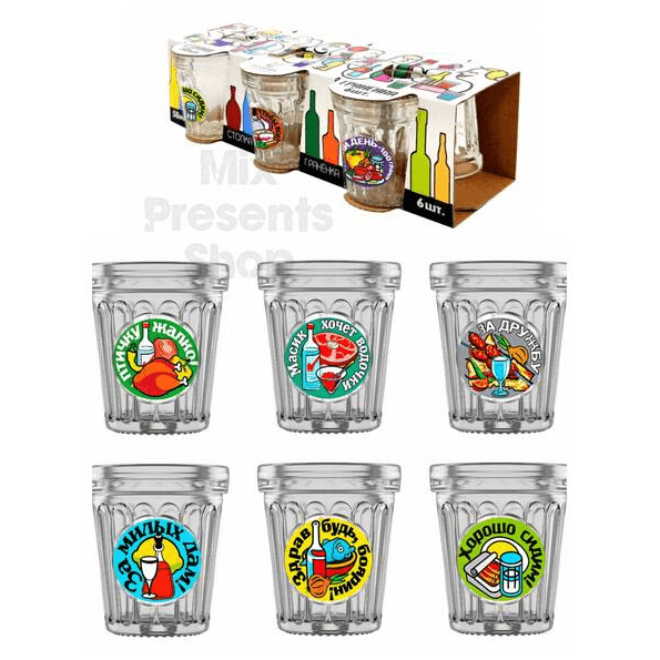 "Tostlar" rýumkalar toplumy 6sany 50mlÝokary hilli rýumkalar toplumy, suratlar bilen. Toplumdaky suratlar: miks (garyş) Öndüriji: RussiýaAjaýyp sowgat ideýasy!