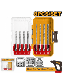 Perforator üçin 8 sany SDS plus burgy toplumy 5110, 6110, 6110, 8110 mm 6160, 6160, 8160, 10160 mm Goşa blisterde gaplanan