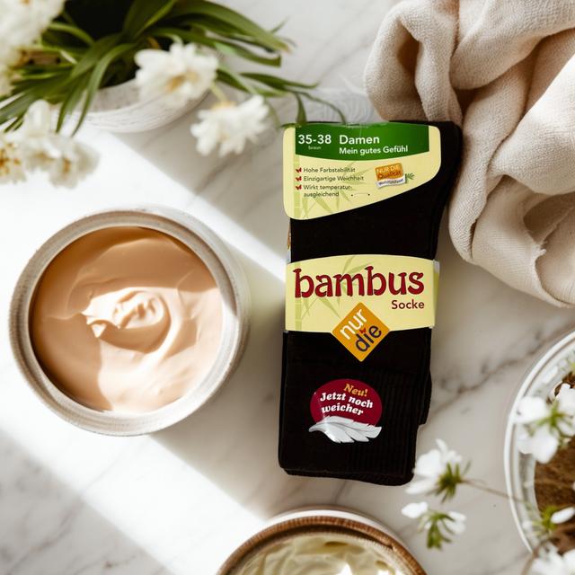 Klassiki joraplar, bambuk, goňur Reňkler: goňur Ölçegi: 35-38, Düzümi: 79% viskoza, 19% poliamid, 2% elastan Germaniýada öndürildi.