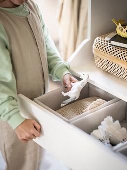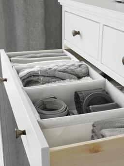 BAXNA kiçi tertipleşdirijisi çekmejeleriň içinde içki eşikleri, joraplary ýa-da beýleki kiçi zatlary tertipleşdirmek üçin amatlydyr. Ýumşak poliester materialy geýimleri goraýar. Ulanmaly Ýerleri: Şkaflaryň çekmejeleri ýa-da tekjeleri. Tehniki Aýratynlyklary Reňki: Çal/Ak Materialy: 100% Poliester. Ölçegleri: Ini: 20 sm, Çuňlugy: 26 sm, Beýikligi: 10 sm. Aýratynlyklary: Ýumşak material, kiçi zatlar üçin.