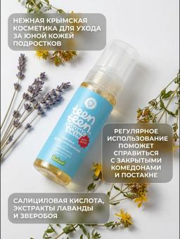 Ýumşak arassalaýjy we ýag öndürilişini kadalaşdyrýar. Salisil turşusy akne sebäplerini ýok edýär we ölü deri öýjüklerini arassalaýar. Lawanda we Sent Jon wort ekstraktlary antiseptik we bejeriji häsiýetleri üpjün edýär. Bu liniýadaky tonikleri deri idegiňiziň ikinji ädimi hökmünde ulanyň. Teen Teen ýaş deri üçin tebigy Krym kosmetikasynyň liniýasydyr. Teen Teen kosmetikasy ýaş deriniň aýratyn zerurlyklaryny göz öňünde tutup döredildi we ýaş deriniň aladalaryny çözýär: akne, gurak we suwsuzlanan deri, gyzarma we gyjyndyrma, gabyklanma we deň däl deri reňki. Formulalar peýdaly häsiýetleri bilen tanalýan sink, salisil turşusy, azelain turşusy, retinol, biokükürt we niasinamid ýaly işjeň maddalary öz içine alýar. Ulanylyşy: Çygly deriňize az mukdarda köpük çalyň, ýumşaklyk bilen owkalaň, soňra ýyly suw bilen ýuwuň. Ulanandan soň, Teen Teen Tonikini çalyň. Göwrümi: 170 ml. Düzümi: Arassalanan suw, koko-glýukozid, lawanda we Sent-Jon wort ekstraktlary, kapriloil/kaproil metilglýukamid, kokamidopropil betain, gliseril oleat, gliserin, lauril metilglýukamid, salisil turşusy, dinatriý kokoamfodiasetat, allantoin, beta-glýukan, benzil spirti, sorbin turşusy, benzoý turşusy, degidrosirke turşusy, hoşboý ys düzümi.
