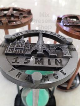 Çägeli sagat otag, ýatylýan otag, okuw ýa-da ofis üçin ajaýyp bezegdir. Bu şekil, jaý, kottej ýa-da çagalar otagy üçin ajaýyp içki element boljak metaldan, mineral aýnadan we bezeg reňkli gumdan ýasalýar. Boýy 16,5 sm 15 minut aýlaw Reňk: garyş