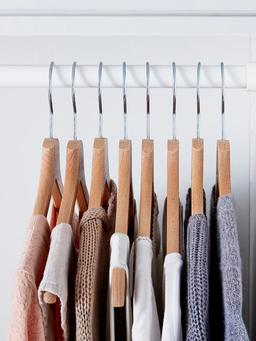 Goňur reňkli 8 sany asgyç toplumy. Köýnek, geýim ýa-da beýleki zatlary tertipli we amatly saklamak üçin niýetlenen.