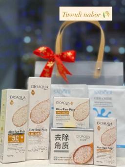 Bu eksklýuziw toplumymyz bilen deriniňize professional ideg we parlaklyk sowgat ediň! Toplumda derini arassalamak, nemlendirmek we goramak üçin iň zerur serişdeler jemlenendir. Toplumyň düzümi: Ýüz üçin losýon: Derini çuňňur arassalaýar, janlandyrýar we krem sürtmäge taýýarlaýar. SPF goragly krem: Gündizki idegiň aýrylmaz bölegi. Ultromelewşe şöhleleriniň zyýanly täsirinden goraýar we wagtyndan öň garalmagyň öňüni alýar. Piling-krem: Derini ýumşaklyk bilen täzeleýär, ölen öýjükleri aýyrýar we ýüzüň reňkini düzleýär. Maska-stik: Gözenekleri çuňňur arassalamak üçin amatly format. Çalmak aňsat we eliňizi hapalamaýar. Nemlendiriji ýüz maskasy (2 sany): Gurak we ýadaw deri üçin gyssagly kömek. Derini çuňňur iýmitlendirýär we ýüzüňize terlik berýär.