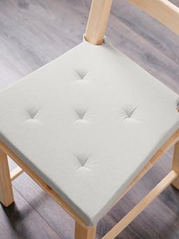 Oturgyç ýassygy IKEA JUSTINA: Materialy Mata, Penopolimer doldurgyç. Oturgyçlarda oturmak üçin goşmaça ýumşaklyk. Aýratynlygy: Aňsat arassalanýar, ýuwup bolýar. Ýönekeý dizaýny islendik oturgyç bilen uýgunlaşýar. Razmeri U: 35 sm, G: 40 sm, Galyňlygy: 4 sm. Reňki Ak.