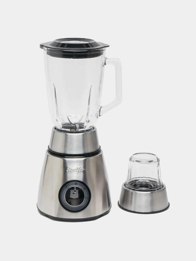 Sonifer SF-8014 — bu nahar taýýarlamakda has giň mümkinçilikleri hödürleýän «4-i 1-de» toplumly aşhana enjamydyr. Ýönekeý modellerden tapawutlylykda, bu toplumda ölçeg stakany hem bar, bu bolsa nahar taýýarlanyňyzda ölçegleri takyk saklamaga kömek edýär. Onuň döwrebap dizaýny we güýçli motory islendik aşhana üçin ajaýyp saýlawdyr. Esasy artykmaçlyklary: 4-i 1-de toplum: Blender aýagy, mikser pürçügi, dograýjy gaby we ýörite ölçeg stakany. Berk polat pyçaklar: Gaty gök önümleri we kokteýl üçin buzy hem aňsatlyk bilen dograýar. Tizlik sazlaýjysy: Tizligi üýtgetmek arkaly naharyňyzyň galyňlygyny (püre ýa-da bölekli) islegiňize görä sazlap bilersiňiz. Gorag ulgamy: Motoryň aşa gyzmagyndan goraýan ýörite ulgam enjamyň ömrüni uzaldýar. Asuda işleyiş: Ýokary kuwwatyna garamazdan, blender pes ses bilen işleýär.