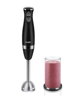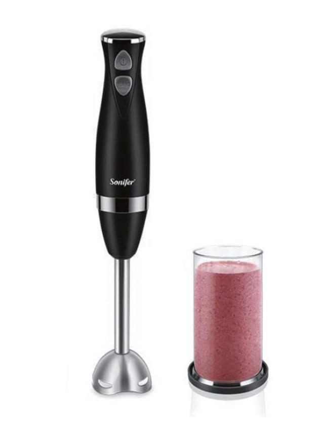 Sonifer SF-8046 el blenderi — aşhanada ýokary güýji we ulanşygyň amatlylygyny özünde jemleýän köp funksiýaly kömekçidir. Enjamyň käbir aýratynlyklary: Dolandyryş elektron blok arkaly amala aşyrylýar, bu bolsa tizligi takyk we ýumşak sazlamaga mümkinçilik berýär. Işleýiş tertibiniň iki görnüşiniň birini saýlap bolýar: turbo tertibi ýa-da impulsly tertip. Korpusynyň materialy — metal we plastik, bu bolsa enjamyň dözümliligini we ygtybarlylygyny kepillendirýär. Taýpylyp gitmeýän aýajyklary blenderiň stol üstünde durnukly durmagyny üpjün edýär we iş wagtynda onuň tötänleýin süýşmeginiň öňüni alýar. Blender dograýjy-nasadka bilen üpjün edilen, ol dürli önümleri çalt we hilli dogramaga mümkinçilik berýär. Gabyň göwrümi 0,7 litr bolup, bu tutuş maşgala üçin ýeterlik mukdarda önüm taýýarlamaga şert döredýär. Enjamda iki sany iş tizligi bar, bu bolsa önümleriň her bir görnüşi üçin amatly tertibi saýlamaga mümkinçilik berýär. Blender pes ses derejesi bilen üpjün edilen, bu bolsa onuň işleýşini diýseň asuda edýär. Tok şnurunyň uzynlygy 1 metr bolup, enjamy islendik aşhanada ulanmak üçin amatlylygy üpjün edýär.