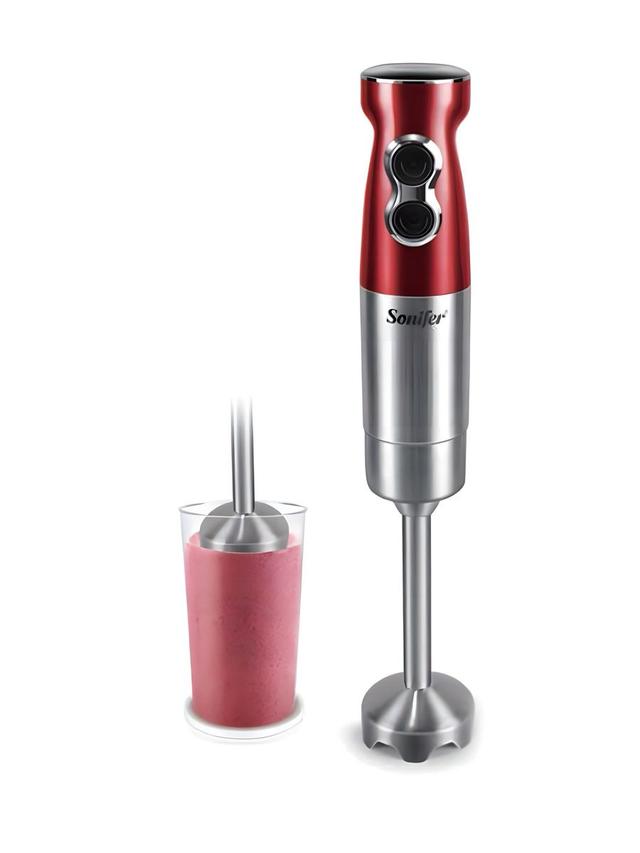 Sonifer SF-8054S el blenderi — önümleri çalt dogramak we garyşdyrmak üçin niýetlenen ygtybarly we netijeli kömekçidir. Enjamyň käbir aýratynlyklary: Güýçli motor ýokary öndürijiligi üpjün edip, pýure, smuzi we souslary aňsatlyk bilen taýýarlamaga mümkinçilik berýär. Blenderiň aýajygy dözümli poslamaýan polatdan ýasalan, bu bolsa gyzgyn önümler bilen işlemäge şert döredýär. Çybyk görnüşli korpusynyň ergonomiki dizaýny enjamy elde saklamagy we bir el bilen dolandyrmagy amatly edýär. Enjam gysga wagtyň içinde birmeňzeş garyndy gazanmak üçin ýörite formalı ýiti pyçaklar bilen üpjün edilen. Işi çaltlandyrmak üçin birnäçe tizlik tertibi, şol sanda turbo funksiýasy göz öňünde tutulan. Ykjam ölçegi blenderi hatda kiçi aşhanalarda hem köp ýer tutmazdan saklamaga mümkinçilik berýär. Aýrylýan aýajygy aňsatlyk bilen sökülýär, bu bolsa enjamy arassalamak we oňa seretmek işini ýeňilleşdirýär. Aýajygynyň oýlanyşykly gurluşy ulanylýan wagty suwuklygyň töwerege syçramak ähtimallygyny peseldýär.