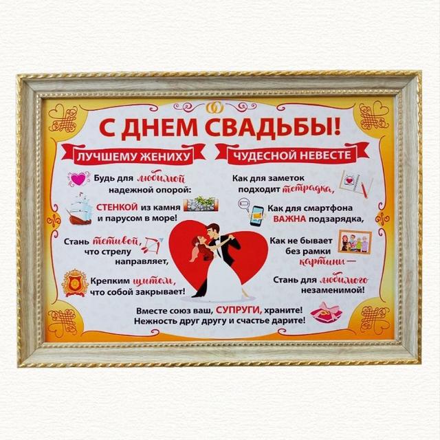 Постер "С днём свадьбы" А4 в рамке