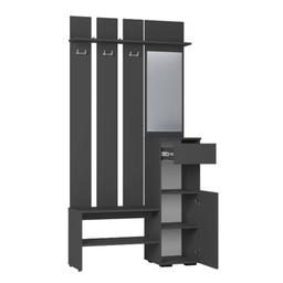 Miýa (BLACK) koridor mebeli Miýa koridor mebeli öýüň girelgesini tertipli gurmaga kömek eder. Daşky furniturasyz (tutawaçsyz) ýönekeý geometrik gurluşy wizual ýeňillik gurşawyny döredýär. Asgyçlar gündelik geýilýän ýokary eşikler üçin amatlydyr, açyk bölümlerde öý slipperlerini we köçe aýakgaplaryny saklamak oňaýly, çekme bolsa açarlary, äýnekleri, ellikleri we beýleki möhüm ownuk goşlary el ýeterde saklamaga mümkinçilik berýär. Köp funksional Miýa aýakgap şkafy kiçi koridorlar üçin iň amatly çözgütdir. Model köp ýer tutmaýar, emma aýakgaplary amatly saklamaga mümkinçilik berýär. Aýratynlyklary: Material: Ýokary hilli 18 mm DSP. Reňki: Gara (Black). Aýratynlygy: Daşky furniturasyz dizaýn, çekme, açyk bölüm. Ölçegleri: Boýy: 200 sm. Ini: 100 sm. Çuňlugy: 36 sm. Eltip bermek we gurnamak: Mugt.