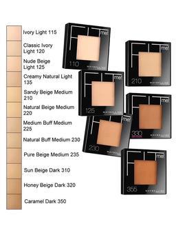 Aýratynlyklary Reňk: №125 NUDE BEIGE Göwrümi: 9gr Düşündiriş Adaty gurak deri üçin ýagsyz we ýeňil pudra Deriňiziň isleglerine laýyk gelýän örtük üçin taýýar formula Tebigy makiýažy düzmäge we hatda deriniň gurluşyny düzmäge kömek edýär. “Maybelline Fit Me” hiç haçan ýelmeşmeýän we ajaýyp birleşýän pudra. Ulanyş tertibi Pudra çotgasy ýa-da makiýaž gubka bilen ýüzüňize pudry çalyň.