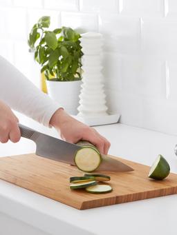 IKEA APTITLIG (Bambuk) Bu berk we giň kesiş tagtasy bambukdan — pyçaklaryňyzyň ýüzüni küteltmeýän, çydamly tebigy materialdan ýasalandyr. Uly ölçegi saýasynda gök önümleri, eti ýa-da çöregi dogramak üçin ýeterlik ýer berýär, onçakly dik bolmadyk gyralary bolsa tagtany aňsatja götermäge we öwürmäge mümkinçilik berýär. Bambugyň owadan nagyşlary we ýyly reňki saýasynda, ony peýnirleri we beýleki işdäaçarlary hödürlemek üçin hem ulanmak bolýar. Bambuk çyglylyga durnuklylygy we aňsat arassalanmagy bilen islendik aşhanada iň gerekli esbaplaryň biri bolar. 45x28 sm