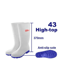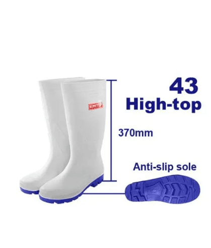 EMTOP ERBTW043 rezin ädikleri (43 ölçeg) Bu ýokary çyglylyk şertlerinde, azyk senagatynda, lukmançylykda ýa-da oba hojalygynda ulanmak üçin niýetlenen ygtybarly gorag ädikleridir (adatça ak reňkde). Ýokary hilli PWH materialyndan taýýarlanylan bu ädikler arassalygy, oňaýlygy we suwdan doly goragy üpjün edýär. Häsiýetnamalary: Ölçegi: 43; Materialy: PWH (polivinilhlorid); Rengi: Ak; Dabany: Taýmaýan, ýaglara we himiki birleşmelere durnukly; Aýratynlyklary: 100% suw geçirmeýänlik, arassalamak we dezinfeksiýa etmek aňsatlygy.