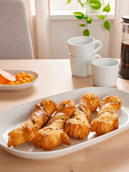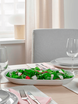 Bu 32x18 sm ölçegdäki ak reňkli serwis tarelkasy gündelik naharlar üçin amatlydyr. Ýönekeý we arassa dizaýny bilen stoluňyza owadanlyk goşýar.