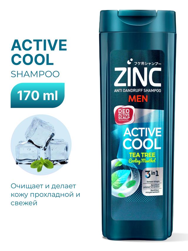 ZINC Men Active Cool şampuny erkekleriň başynyň deresiniň aýratynlyklaryny hasaba alyp, ýörite olar üçin işlenip düzüldi. Güýçli Complex ZPT-O formulasy arkaly, ol goňagy netijeli aýyrýar we onuň gaýtadan döremeginiň öňüni alýar. Narpyz (mýata) ekstrakty bilen baýlaşdyrylan bu şampun şol bada salkynladyjy täsirini we uzak wagtlap dowam edýän terlik duýgusyny berýär. Serişde saçlary hapalardan we artykmaç ýaglardan düýpli arassalaýar, olary sagdyn hem-de oňaýly edýär.
