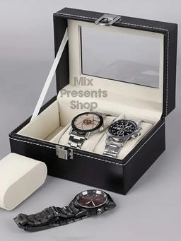 Sagat üçin gutujyk - organaýzer (3 sagatlyk) 3 bölümli ajaýyp sagat we şaý-sepler gutusy, esbaplary, şaý-sepleri we geýim şaý-seplerini guramak we saklamak üçin amaly çözgütdir. Ajaýyp dizaýn, jaýyň ýa-da kwartiranyň islendik interýerine we bezegine laýyk bolmagy aňsatlaşdyrýar. Uniwersal gara guty, öz zatlaryna ideg edýän we hemme zatda tertip-düzgüni söýýän erkekler we aýallar üçin özboluşly sowgat we tapyndy bolar. Şeýle hem aýratynlygy we oňat tagamy nygtaýar. Ýokary hilli EKO derisinden ýasalan. Ajaýyp sowgat ide ýasy!