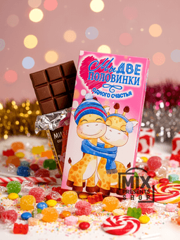 Шоколадная плитка "Мы две половинки одного счастья" подарочная