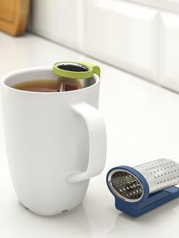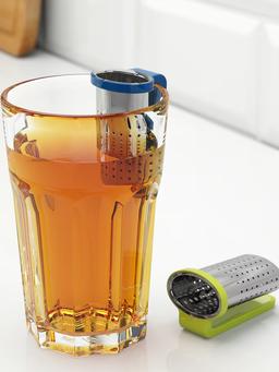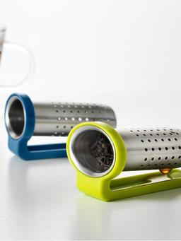 Açyk-ýaşyl we gök reňklerde çaý süzgüjisi. Çayyň içindäki ýapraklary we zolalary ýygnaýar, süýji we arassa çaý içmäge kömek edýär. Ulanylmagy aňsat we arassalamagy ýönekeý. Dizaýny ýeňil we owadan.