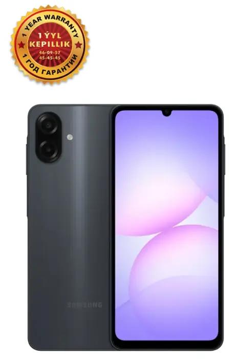 Smartfon Samsung Galaxy A07 4/64 GB, Gara — bu başlangyç derejeli, ygtybarly enjam. Displeý: 90 Hz täzelenme ýygylygy bolan 6,7 dýuýmlyk ekran bilen enjamlaşdyrylan. Matrisa görnüşi — PLS LCD, çözgüdi bolsa HD+ (720 x 1600 piksel). Öndürijilik: Sekiz ýadroly MediaTek Helio G99 prosessorynda işleýär. Ýat: Konfigurasiýa 4 GB operatiw ýady we 64 GB içki ýatgyny öz içine alýar. Şeýle hem, microSDXC karty arkaly giňeltmek mümkinçiligi bar. Kamera: Esasy kameranyň çözgüdi 50 MP, öň kameranyňky bolsa 8 MP. Batareýa: 5000 мАч kuwwatly litiý-ion batareýasy uzak wagtlap işlemegi üpjün edýär. Goşmaça: Iki SIM kartyny goldaýar, gapdal tarapdan barmak yzy skaneri we IP54 standarty boýunça tozan we suw damjalaryndan goragy bar. Enjamyň agramy 184 g. Operasion ulgam: One UI 7 interfeýsi bilen Android 15 dolandyryşynda işleýär.