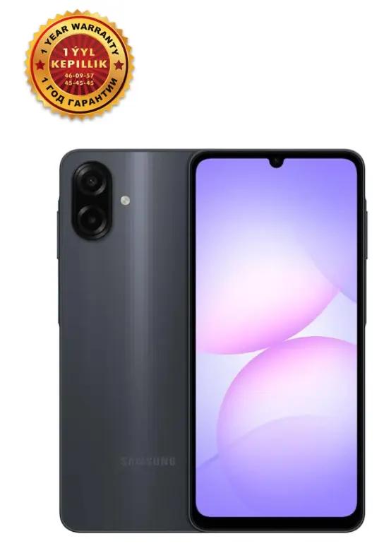 Smartfon Samsung Galaxy A07 6/128 GB, Gara — bu başlangyç derejeli, ygtybarly enjam. Displeý: 90 Hz täzelenme ýygylygy bolan 6,7 dýuýmlyk ekran bilen enjamlaşdyrylan. Matrisa görnüşi — PLS LCD, çözgüdi bolsa HD+ (720 x 1600 piksel). Öndürijilik: Sekiz ýadroly MediaTek Helio G99 prosessorynda işleýär. Ýat: Konfigurasiýa 6 GB operatiw ýady we 128 GB içki ýatgyny öz içine alýar. Şeýle hem, microSDXC karty arkaly giňeltmek mümkinçiligi bar. Kamera: Esasy kameranyň çözgüdi 50 MP, öň kameranyňky bolsa 8 MP. Batareýa: 5000 мАч kuwwatly litiý-ion batareýasy uzak wagtlap işlemegi üpjün edýär. Goşmaça: Iki SIM kartyny goldaýar, gapdal tarapdan barmak yzy skaneri we IP54 standarty boýunça tozan we suw damjalaryndan goragy bar. Enjamyň agramy 184 g. Operasion ulgam: One UI 7 interfeýsi bilen Android 15 dolandyryşynda işleýär.