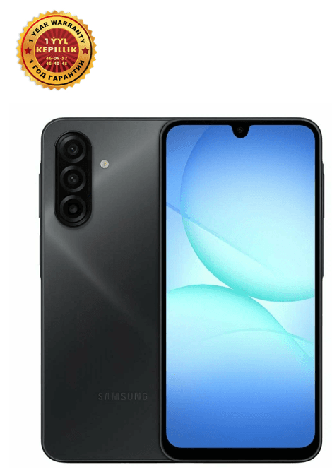 Samsung Galaxy A17 — bu 2025-nji ýylyň täze nesline mahsus bolan sypaýylygyň we tehnologik kämilligiň jemidir. Täzelenen ultra-inçe korpusly klassyky gara reňkdäki bu model, eýesiniň kämil islegini görkezip, saldamly we premium görnüşe eýedir. 4/128 GB ýat konfigurasiýasy we optimallaşdyrylan 8 ýadroly prosessory saýasynda, smartfon gündelik ulanmak üçin zerur bolan ähli goşundylaryň durnukly we bökdençsiz işlemegini üpjün edýär. Kämil ergonomika: Galaxy A17 has-da nepis we ýeňil boldy, bu bolsa ony hatda bir eliň bilen hem dolandyrmagyň örän amatly bolmagyny üpjün edýär. Günüň dowamynda doly energiýa: 5000 mAs göwrümli güýçli akkumulýator täze energiýany tygşytlaýjy tehnologiýalar bilen utgaşyp, günüň dowamynda zarýad bermezden işjeň aragatnaşykda galmaga we işlemäge mümkinçilik berýär. Jikme-jikliklerdäki ygtybarlylyk: IP54 standarty boýunça gorag enjamyň içki böleklerini tozandan we tötänleýin suw damjalaryndan ygtybarly goraýar we gündelik durmuşda smartfonyň uzak wagtlap hyzmat etmegini kepillendirýär.