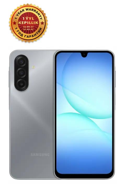 Smartfon Samsung Galaxy A17 6/128 GB, Çal — bu uly 6,7 dýuýmlyk Super AMOLED ekrany, kuwwatly 5000 мАh batareýasy we 50 Mp üçlüp kamera bilen ygtybarly enjamdyr. Ekran: 6,7 dýuýmlyk Super AMOLED ekran, FHD+ (1080 x 2340 piksel) çözgüdi we 90 Gs täzelenme ýygylygy bilen. Prosessor: Sekiz ýadroly MediaTek Helio G99 prosessor. Ýat: 6 GB operatiw ýat we 128 GB içki ýat, 2 TB çenli microSD kart bilen giňeldip bolýar. Kameralar: Esasy kamera: Üçlüp kamera ulgamy: 50 Mp esasy linza, 5 Mp ultra giň linza, 2 Mp makro linza. Öň kamera: 13 Mp. Batareýa: 25 Wt çalt zarýad goldawly, 5000 мАh litiý-polimer batareýa. Goşmaça: Gapdal tarapda ýerleşýän barmak yzy skaneri, iki SIM kartany goldaýar.