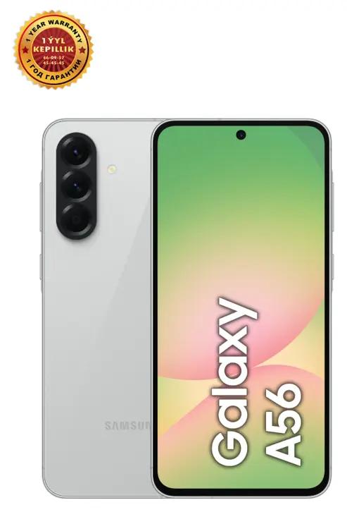Smartfon Samsung Galaxy A56 8/256 GB, Çal — bu, stiliň, öndürijiligiň we Samsung-dan öňdebaryjy tehnologiýalaryň ajaýyp utgaşmasy. Ekran: 6,7 dýuým Super AMOLED displeý Full HD+ (2340x1080 piksel) çözgütniligi, 120 Gs täzelenme ýygylygy we 1200 nit ýokary ýagtylygy bilen, hatda ýiti gün şöhlesinde-de düşnükli şekili üpjün edýär. Öndürijilik: Güýçli sekiz ýadroly Samsung Exynos 1580 prosessor (2,9 GGs çenli) we 8 GB operatiw ýat bilen enjamlaşdyrylan bolup, islendik programmalarda we oýunlarda çalt we durnukly işlemegi kepillendirýär. Kamera: Üç esasy kameradan ybarat ulgam 50 MP (f/1.8) optiki durnuklaşdyrmaly (OIS) giň burçly obýektiwi, 12 MP ultra giň burçly obýektiwi we 5 MP makro obýektiwi öz içine alýar. Öň kameranyň çözgütniligi 12 MP. Ýat we saklama: Faýllaryňyzy, suratlaryňyzy we wideolaryňyzy saklamak üçin 256 GB içerki ýat berlen. Ýat kartasy üçin slot ýok. Batareýa: Kuwwatly 5000 мА·ч batareýa uzak wagtlap ulanmagy üpjün edýär. 45 W tizlikli simli zarýadka goldanylýar. Dizaýn we gorag: Gorilla Glass Victus+ aýnasyndan edilen owadan korpus ygtybarlylygy we premium daşky görnüşi üpjün edýär. Enjam IP67 standarty boýunça suwdan we tozandan goragly.