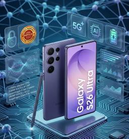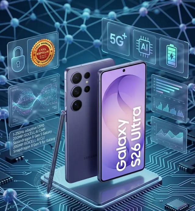 Cobalt Violet reňkli Samsung Galaxy S26 Ultra — bu tehnologik kämilligiň we premium estetikanyň sazlaşygydyr. Enjam aýratyn berk titan korpusyny we çuň, asylly melewşe öwüşginini özünde jemläp, eýesiniň özboluşlylygyny we ýokary statusyny nygtaýan keşbi döredýär. 512 GB göwrümli wersiýasy, iň ýokary durulykdaky media mazmunlaryň ägirt uly arhiwlerini saklamak üçin doly erkinligi üpjün edýär. Eksklýuziw titan Cobalt Violet: Doýgun melewşe reňkli innowasion ýokary berklikli titan korpusy diňe bir ünsi çekmek bilen çäklenmän, eýsem enjamyň minimal agramynda zeperlere garşy adatdan daşary durnuklylygy kepillendirýär. Ultimatiw öndürijilik: 12 GB operatiw ýat we iň täze prosessor köp sanly işleri bir wagtda ýerine ýetirmekde (multitasking), professional programmalarda we täze nesliň mobil oýunlarynda deňi-taýy bolmadyk iş tizligini üpjün edýär.