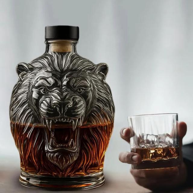 Стеклянная винная бутылка в форме головы Льва