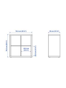 KALLAX – 4 gözenekli (2x2) ykjam we çeýe tekje. Goşmaça gapy goýmasy bilen zatlary gözden daşda, tertipli saklaýar. Diwara berkidip ýa-da otag bölüji hökmünde ulanyp bolýar. Ulanmaly Ýerleri: Ýaşaýyş otagy, ofis we çagalar otagy üçin amatly. Tehniki Aýratynlyklary Reňki: Ak Materialy: Span tagtasy we folga. Ölçegleri: Ini: 77 sm, Boýy: 77 sm, Çuňlugy: 39 sm.