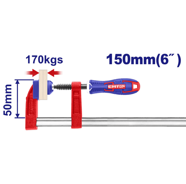 Emtop ECLPF05101 — ölçegi 50×150 mm (çuňlugy × uzynlygy) bolan F-görnüşli gysgyçdyr (strubsina). Uglerodly polatdan ýasalan, maksimal gysyş güýji — 170 kg, nurbat mehanizminiň sapagy (rezbasy) 11 mm, ştangasynyň giňligi we galyňlygy — 15×5 mm, plastik tutawajy bar, agramy takmynan 0,9 kg, Hytaýda öndürilen.