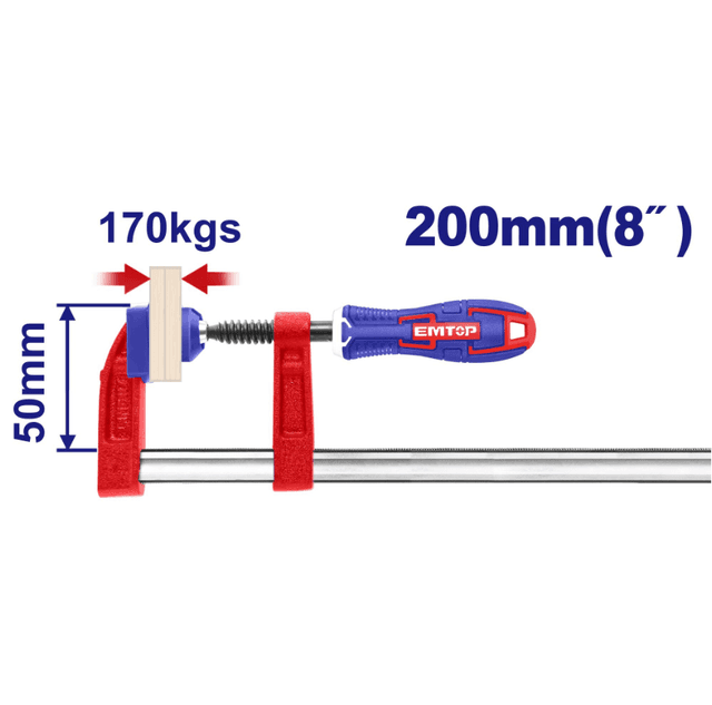 Emtop ECLPF05201 — ölçegi 50×200 mm bolan F-görnüşli gysgyçdyr (strubsina). Hromlanan örtükli uglerodly polatdan ýasalan, maksimal gysyş güýji — 170 kgf, ştangasynyň galyňlygy 5 mm we giňligi 15 mm, nurbat sapagynyň (rezbasynyň) diametri — 11 mm, amatlylyk üçin plastik tutawajy bar, agramy — takmynan 0,42 kg, Hytaýda öndürilen.