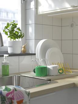 RINNIG guraýjysy gap-gaçlary we stakanlary guratmak üçin ýönekeý we amatly çözgütdir. Onuň iki tarapy bar: bir tarapy tekiz, beýleki tarapy stakanlar üçin ýörite kiçi çykyntgylar bilen üpjün edilen. Ak reňki islendik aşhana interýerine kynçylyksyz utgaşýar. Ol ýygylyp bilner we saklamasy aňsat. Ulanmaly Ýerleri: Aşhana stolunyň üstünde ýa-da çümmegiň ýanynda gabygyň astyna suwy ýygnamak üçin. Tehniki Aýratynlyklary Reňki: Ak Materialy: Sintetiki kauçuk/Plastmassa. Ölçegleri: Uzynlygy: 40 sm, Ini: 31 sm. Aýratynlyklary: Iki taraplaýyn, ýygylyp bilner, el bilen ýuwmak maslahat berilýär.