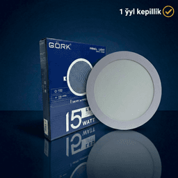 15 Wt kuwwatyndaky G.Ö.R.K. LED paneli — ýaşaýyş we ofis interýerlerinde ýagty hem-de tekiz yşyklandyryşy döretmek üçin iň amatly çözgütdir. Inçe korpusy saýasynda, yşyklandyryjyny hatda iň pes potolok boşluklaryna hem gurnap bolýar. Onuň buzyk (matowy) örtügi ýagtylygyň giň burçly ýaýramagyny üpjün edýär we gözüňi gamaşdyrman, oňaýly gurşaw döredýär. Sowuk ak ýagtylyk (6500K) işjeňligi we ünsüňi jemlemegi artdyrýar, bu bolsa iş otaglary, koridorlar we söwda zolaklary üçin kämil saýlowdyr. Kuwwaty: 15 Wt ( ýagtylyk). Görnüşi: Round (tegelek). Gurnama görnüşi: Içine gurnalýan (asma we dartylýan potoloklar üçin). Ýagtylyk öwüşgini: 6500K (sowuk gündiz ýagtylygy). Artykmaçlyklary: Sada dizaýn, ýokary energiýa tygşytlylygy we diodlaryň uzak ömürliligi.