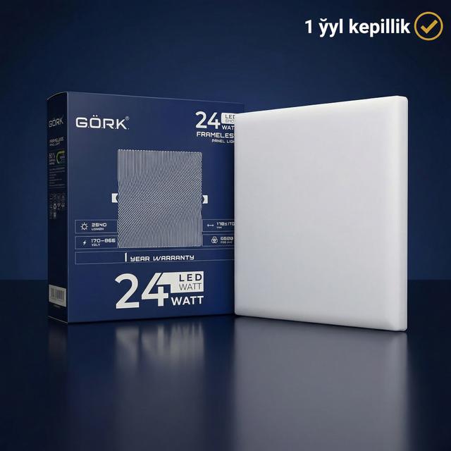 24 Wt kuwwatyndaky G.Ö.R.K. kwadrat ramaýsyz yşyklandyryjysy uly meýdançalaryň esasy yşyklandyryşy üçin kämil çözgütdir. Frameless gurluşy görünýän ramalary aradan aýyrýar, bu bolsa ýagtylyk paneliniň potologyň ýüzi bilen doly utgaşmagyna mümkinçilik berýär. Ýokary kuwwaty giň myhmanhanalar, açyk görnüşli ofisler we söwda zallary üçin güýçli hem-de tekiz ýagtylyk akymyny üpjün edýär. Sowuk ak ýagtylyk (6500K) interýeriň döwrebaplygyny we anyklygyny nygtap, tämiz hem-de kämil görünijilik gurşawyny döredýär. Kuwwaty: 24 Wt (uly meýdançalar üçin ýokary ýagtylyk). Görnüşi: Frameless (ramaýsyz / bildirmän gurnalýan). Görnüşi: SQ-Spot (kwadrat). Ýagtylyk öwüşgini: 6500K (sowuk gündiz ýagtylygy). Artykmaçlyklary: "Bildirmeýän" gurnama täsiri, rama ýalpyldylarynyň bolmazlygy we uzak ömürlilik.