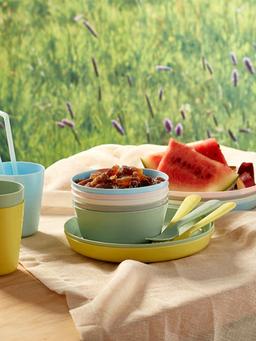 Özlerini iýmitlendirmegi öwrenmäge çalyşýan, dökmäge we zaýalamaga meýilli ýaş çagalar üçin amatly.Mikrowolnowkada 100 ° C çenli gyzdyryň. Gap-gaç ýuwýan maşynda 70 ° C-e çenli temperaturada ýuwup bolýar. Diametri: 19 sm. Gaplamagyň mukdary: 6 sany.