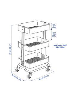 IKEA-nyň iň meşhur we çeýe saklama çözgüdi bolan RÅSKOG arabasy, indi ýakymly çal-ýaşyl reňkde. Bu araba kiçijik giňişliklerde hem ajaýyp orun tapýar. Dört sany ýörediji tigirleri onuň aňsat hereket etmegini üpjün edýär, gulplama funksiýasy bolsa durnuklylygy kepillendirýär. Tor görnüşli tekjeler howanyň aýlanmagyna kömek edýär. Ulanmaly Ýerleri (Universal we Köp Maksatly): Aşhana: Özboluşly reňki bilen aşhananyňyzda goşmaça bezeg we saklama orny dörediň. Wanna otagy: Süpürgiçler, efir ýaglary we gigiena serişdeleri. Iş otagy/Ofis: Ofis esbaplaryny we kagyzlary tertiplemek. Ösümlikler: Kiçijik otag ösümliklerini ýa-da sadaw esbaplaryny goýmak üçin ajaýyp ""gullukçy"". Reňki: Çal-Ýaşyl Materialy: Polat , Epoksi poroşok örtügi. Ölçegleri: Uzynlygy: 35 sm, Ini: 45 sm, Boýy: 77 sm. Maks. Agram (Jemi): 18 kg.