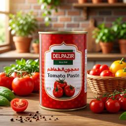 Delpazir pomidor pastasy, 400 gr Delpazir — Eýranyň ýokary hilli pomidorlaryndan taýýarlanan tebigy önümdir. Günüň aşagynda bişen iň saýlama pomidorlardan taýýarlanylandygy sebäpli, bu pasta goýy konsistensiýasy, açyk gyzyl reňki we täze pomidoryň baý tagamy bilen tapawutlanýar. Üstünlikleri: 100% Tebigy: Düzüminde krahmal, emeli reňkler, konserwantlar we GMO ýokdur. Ýokary konsentrasiýa: Gury maddalaryň mukdary (Brix) 25-27% bolup, bu önümiň tygşytly harçlanmagyny üpjün edýär. Amatlylyk: Gapyrgyly demir banka açar (Easy Open) bilen enjamlaşdyrylan, ony açmak örän aňsatdyr. Giňden ulanylyşy: Çorbalar (borş, harço), pasta üçin souslar, etli we gök önümli naharlar taýýarlamak üçin kämil saýlawdyr. Häsiýetnamasy: Düzümi: Pomidor, duz (maksimum 1.5%). Net agramy: 400 gr. Energetiki gymmaty: 100 gr üçin takmynan 102 kkal. Saklanyş möhleti: 24 aý. Öndürilen ýurdy: Eýran.