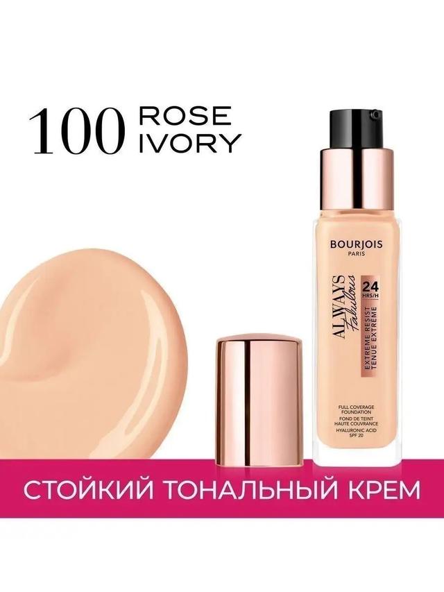 Aýratynlyklary Reňk: №100 ROSE IVORY Göwrümi: 30ml Düşündiriş Bourjoisden gelen “Always Fabulous 24 Hour Foundation” bilen gije-gündiz kemsiz boluň. Näzik fransuz gurluşy kremi ulanmagy aňsatlaşdyrýar we dykyz matdan ýasalan ähli kemçilikleri gizlär. Elmydama Fabulous 24 sagadyň dowamynda durmuşyňyzyň tizligine çydap biler: ýörite işlenip düzülen “Stay-In-Place” tehnologiýasy sebäpli heň islendik ýagdaýda öz ýerinde galar. E witamini we SPF20 formulasy ýüzüňize gidrasiýa we gorag berer. Önüm tebigy, ýumşak we tebigy äheň bilen derini ýagtylandyrar. Deriniň ähli görnüşleri üçin amatly. Ulanyş tertibi Önümi gubka bilen arassalanan ýüz derisine sürtüň we deň paýlaň, barmaklaryňyzyň ujy ýa-da çotga bilen hem ulanyp bilersiňiz.