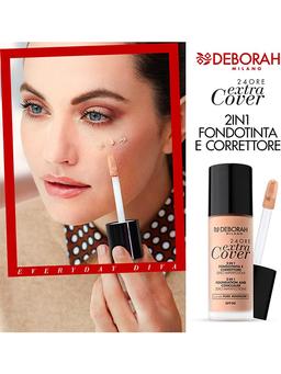 Aýratynlyklary Reňk: №01 Göwrümi: 30ml Düşündiriş “Deborah Extra Cover 24ore 2in1 Foundation & Concealer” SPF20 bilen deriniň problemaly çözgüdi üçin ajaýyp önüm boldy. Işjeň maddalar we pigmentleriň köp konsentrasiýasy sebäpli önüm deriniň kemçiliklerini azaldýar, gözüň aşagyndaky gara tegelekleri ýok edýär, yzlary gizleýär we deriniň reňkini düzýär. Netijede deri mahmal bolýar we kemçiliksiz bolýar. Ulanyş tertibi Önümi barmaklaryňyzyň ujy, çotga ýa-da gubka bilen ýüzüň merkezine sürtüň. Birkemsiz äheň üçin konturlara garyşdyryň.