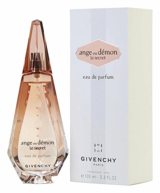 Givenchy Ange Ou Démon Le Secret (100 ml) taharet suwy (köplenç has meşhur bolan Eau de Parfum wersiýasy bilen baglanyşyklydyr) — bu 2009-njy ýylda çykarylan şöhle saçýan, gülli-miweli (Floral Fruity) zenan atyrydyr. Atyr syry we ikitaraplaýynlygy — perişde we jyn keşbini janlandyryp, günäsizlik we özüne çekijilik sazlaşýar. Bu aýdyň çaý akkordy bilen ýagty, oýnakly we täze kompozisiýadyr. Başlangyç notlar Kranberri, Limon, Çaý Täze we ýiti başlangyç. Kranberri we limon ýagty, miweli turşulyk berýär, çaý notasy bolsa arassalyk we guýmagurlyk duýgusyny döredýär. Ýürek notlar Ýasmin Sambak, Suw liliýasy (Küwşen), Roza, Pion Näzik, suwly we gülli ýürek. Ýasmin Sambak we pion elegant, örän zenanlara mahsus, ýöne şol bir wagtda howaly buket döredýär. Esasy notlar Paçuli, Ýagty agaç, Musk Ýumşak, agaçly we arassa esas. Paçuli bu ýerde örän näzik bolup, kompozisiýa artykmaç agram salmazdan ýeňil şiprli çuňluk berýär, musk bolsa ýüpek ýaly yzy üpjün edýär. Ange Ou Démon Le Secret — bu örän täze, şöhle saçýan we elegant atyrdyr. Ol köplenç ideal gündizki atyr diýlip atlandyrylýar. Kompozisiýa çaý we ak gülleriň arassalygy we ýeňilligi bilen tapawutlanýar. Ol ýaz-tomus döwri we gündelik ulanmak üçin ideal laýyk gelýär.