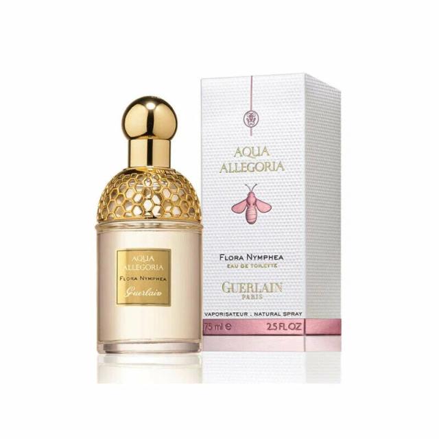 Guerlain Aqua Allegoria Flora Nymphea (75 ml) taharet suwy — bu 2010-njy ýylda Aqua Allegoria kolleksiýasynyň çäginde çykarylan näzik, gülli-ýaşyl (Floral Green) zenan atyrydyr. Atyr nimfanyň keşbinden ylham alyp, ýeňil, howaly we romantiki gülleriň agdyklyk edýän jadyly gül açýan bagyna bagyşlanandyr. Kompozisiýa ýaz oýanmasynyň atmosferasyny ajaýyp beýan edýän näzik bally we poudraly seslenmesi bilen tapawutlanýar. Başlangyç notlar Ýaşyl notalar Täze we arassa başlangyç. Ýaşyl notalar atyra ýeňil çyglylyk we salkynlyk berýär. Ýürek notlar Siren, Žimolost (Balagajy), Bal Näzik we gülli-süýji ýürek. Siren we žimolost tebigy, ýeňil bally akkord bilen ýumşadylan özüne çekiji, biraz poudraly buketi döredýär. Basowy notlar Musk, Agaç notalary Ýumşak, arassa we howaly esas. Musk we ýeňil agaç notalary näzik gülli kompozisiýany agyrlaşdyrmaýan inçe yzy üpjün edýär. Aqua Allegoria Flora Nymphea — bu örän ýeňil, näzik we romantiki atyrdyr. Ol howaly, inçe we ýaz we tomus, gündizki ulanmak üçin ideal. Bu näzikligi, tebigylygy we gülli arassalygy gadyrlaýan zenan üçin ajaýyp saýlawdyr.