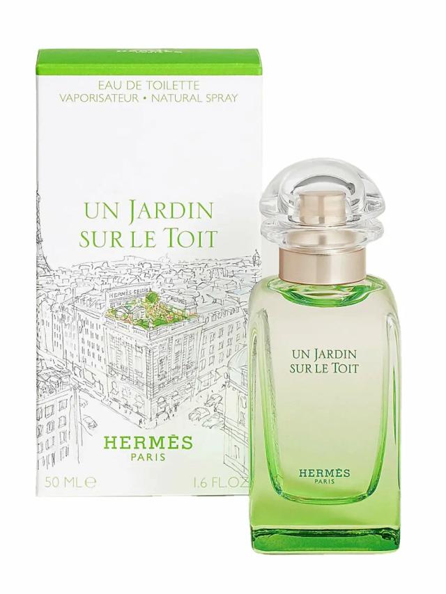 Hermès Un Jardin Sur Le Toit (50 ml) taharet suwy — bu 2011-nji ýylda çykarylan, ýaşyl akkordlary aýdyň beýan edýän aromatiki-miweli (Aromatic Fruity) atyr bolup, erkekler we zenanlar (uniseks) üçin niýetlenendir. Ony Žan-Klod Ellena döredipdir. Atyr Hermès-iň Pariždäki flagman butiginiň üçekdäki gizlin bagyndan ylham alýar. Ol şäheriň arasyndaky ýaşyllygyň şatlygyny, baýramçylygyny we özbaşdak täzeligini janlandyrýar. Kompozisiýa ýagty, şireli we otly-ýaşyl seslenmesi bilen tapawutlanýar. Başlangyç notlar Alma, Armyt, Ýaşyl notalar Gyjyrdaýan, miweli we gujurly başlangyç, şireli miweleriň we täze çapylan otyň duýgusyny berýär. Ýürek notlar Ot, Roza, Magnoliýa Intensiw-ýaşyl we gülli ýürek. Ot notalary agdyklyk edip, çygly ýazgynyň realistiki ysyny döredýär. Basowy notlar Dub, Rozmarin Agaçly we aromatiki esas. Dub we rozmarin otly akkordlary berkitmek bilen atyra ýeňil ajymtyklyk we durnuklylyk berýär. Hermès Un Jardin Sur Le Toit — bu örän täze, şatlykly we ýeňil atyrdyr. Ol optimistik, ýaşyl we biraz süýji (alma we armyt sebäpli). Ýaz we tomus hem-de gündizki ulanmak üçin ideal bolup, arassa, inçe we ýaşaýyş söýüji uniseks-atyr gözleýänler üçin amatlydyr.