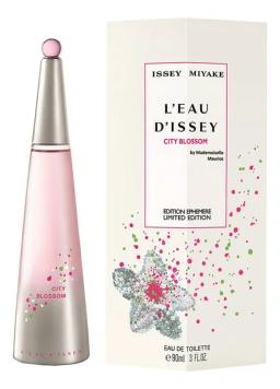 Issey Miyake L'Eau d'Issey City Blossom (90 ml) taharet suwy — bu 2014-nji ýylda çykarylan, zenanlar üçin niýetlenen çäkli neşir, gülli-miweli (Floral Fruity) atyrdyr. Ony Alberto Morilýas döredipdir. Atyr uly şäherde ýaz gülleriniň açylmagyndan ylham alýar. Ol klassik L'Eau d'Issey atyrynyň täzelenen görnüşi bolup, onda suwuň arassalygy sitruslaryň ýagty energiýasy we birden açylan şäher gülleriniň näzikligi bilen utgaşýar. Başlangyç notlar Gyzgylt burç, Sitruslar (Greýpfrut, Limon), Suw notalary Ýalpyldawuk we gujurly başlangyç. Gyzgylt burç ýeňil ysmaly tagam berýär, sitruslar bolsa ýiti, arassa täzeligi üpjün edýär. Ýürek notlar Magnoliýa, Freziýa, Osmanthus, Bal Näzik we zenanlara mahsus gülli ýürek. Magnoliýa we freziýa ýaz buketi döredýär, ýeňil bal akkordy bolsa ýumşak, diňe duýulýan süýjülik we ýylylyk berýär. Basowy notlar Ak musk, Sandal, Kedr Arassa, muskusly-agaçly esas, gülli notalary berkidip, atyra ýeňillik we durnuklylyk berýär. Issey Miyake L'Eau d'Issey City Blossom — bu örän täze, ýazky we ýaşaýyş söýüji atyrdyr. Ol ýagty, gülli we howaly, ýaz-tomus möwsüminde gündizki ulanmak üçin, arassa, ýalpyldawuk we optimistik gülli kompozisiýalary gadyrlaýan zenanlar üçin ideal.