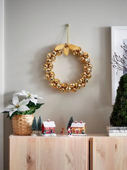 Украшение венок IKEA VINTERFINT, колокольчик золотистого цвета, 27 см