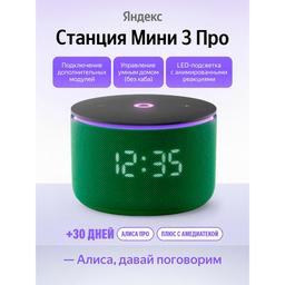 Умная колонка Яндекс Станция Мини 3 Про YNDX-00059, 18 Вт, Bluetooth, Matter, Wi-Fi, ZigBee, питание от сети, зеленый