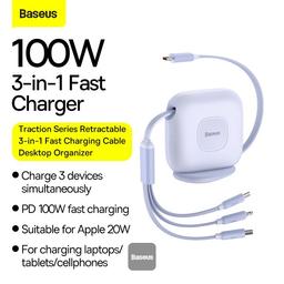 Baseus Traction Series Retractable 3 in 1 Fast Charging Cable Desktop Organizer Type-C to M+L+C 100W 1.7m