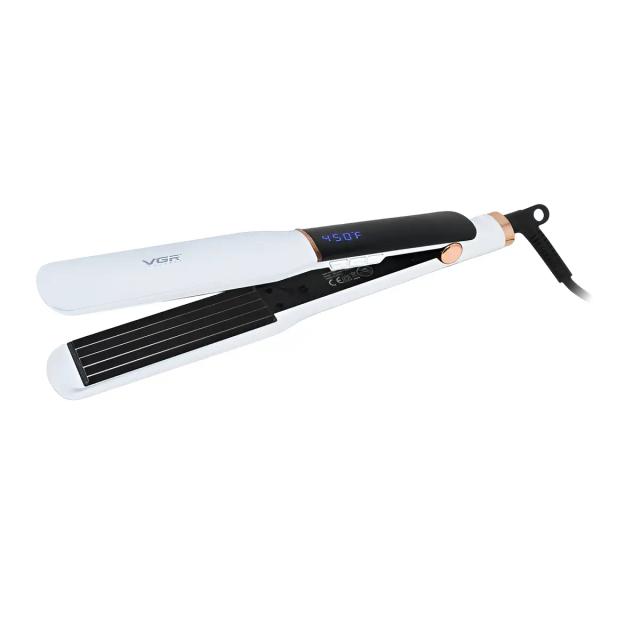 VGR V-519C Professional gofre saç ütügi (LED displeýli) VGR V-519C professional staýleri bilen saçyňyza ajaýyp göwrüm we döwrebap stil beriň. Keramika örtükli giň plastinalar saçyňyzy aşa gyzmakdan goraýar, olaryň tebigy ýalpyldysyny saklaýar we şikes ýetirmän ulanmaga mümkinçilik berýär. Esasy artykmaçlyklary: Keramika örtügi: 38 mm-lik plastinalar ýylylygy deň paýlaýar we saçyňyza zeper ýetirmän oňat netije berýär. 7 sany temperatura derejesi: 100°C-den 230°C-ä çenli sazlamalar islendik saç görnüşine (inçe we galyň) laýyk gelýär. Çalt gyzmak: PTC tehnologiýasy arkaly gural 30–60 sekundyň dowamynda işe taýýar bolýar. Sanly LED displeý: Saýlanan temperaturany anyk görkezýär we işi doly gözegçilikde saklamaga kömek edýär. Howpsuzlyk: 60 minutdan soň awtomatiki öçme funksiýasy we plastinalary ýapyk ýagdaýda saklaýan gulplama düwmesi. Ulanyş aňsatlygy: 360° aýlanýan simy çeýe we rahat ulanmagy üpjün edýär, ýörite asgyjy bolsa saklamaga amatlydyr. Tehniki aýratynlyklary: Kuwwaty: 70 Wt Naprýajeniýe: 100-240 V Simyň uzynlygy: 2 metr Plastinalaryň materialy: Keramika