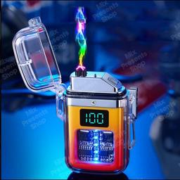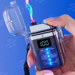 Suw geçirmeýän elektron zažygalka (displeý we çyrasy bilen) Zarýad bermek: USB (kabel girýär) Elektron plazma suw geçirmeýän zažygalka, USB zarýad berilýän, çyra bilen(ýangyn ýel geçirmeýän). Bu innowasiýa zažigalkasy, ýagyşda-da ulanmaga mümkinçilik berýän, suw geçirmeýän dizaýny sebäpli, açyk howada höwesjeňler we dynç alýanlar üçin amatlydyr. Gurlan batareýanyň kömegi bilen bu zažygalkany islendik ýerde ulanyp bilersiňiz. Reňkler: Garyşyk (sargyt edende reňk saýlap bilersiňiz) (reňkleriň bardygyny barlaň)