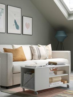 Bu žurnal stoly 91x37 sm ölçegde bolup, ak reňkde öndürilendir we tekerlekli gurluşlydyr. Üstki gatlagy agaçdan, aýaklary metalden taýýarlanypdyr. Ol otagda žurnallary, kitaplary ýa-da kiçi zatlary ýerleşdirmek üçin amatlydyr. Tekerlekli gurluşy sebäpli stoly islendik ýere aňsatlyk bilen göçürmek bolýar. Zamansyz we ýönekeý görnüşi bilen dürli interýer stiline laýyk gelýär. Materialy: üstki gatlagy agaç, aýaklary metal. Ölçegi: 91x37 см. Özboluşlylygy: tekerlekli, göçürmäge amatly.